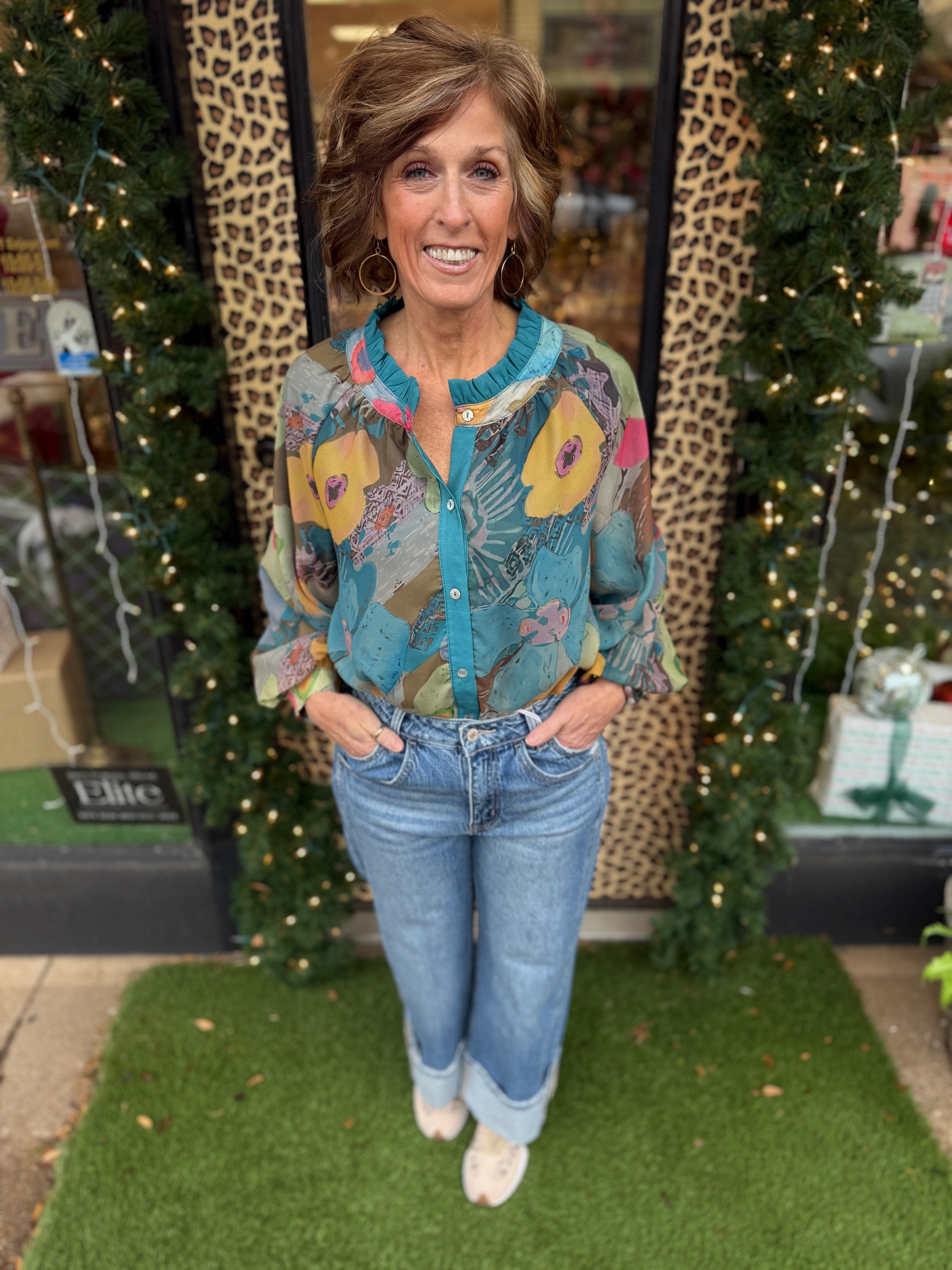 Elevate your wardrobe with the Brinlea, a sophisticated chiffon top that seamlessly blends elegance with contemporary style. Featuring graceful balloon sleeves and a charming ruffled neckline, this piece offers refined femininity. The delicate floral pattern is beautifully balanced by solid contrast detailing, creating visual interest without overwhelming the silhouette. Crafted from 100% polyester, the lightweight chiffon drapes beautifully and moves with ease. Button-down construction provides versatile styling options—wear it polished for professional settings or relaxed for casual occasions. A timeless addition to any discerning wardrobe.