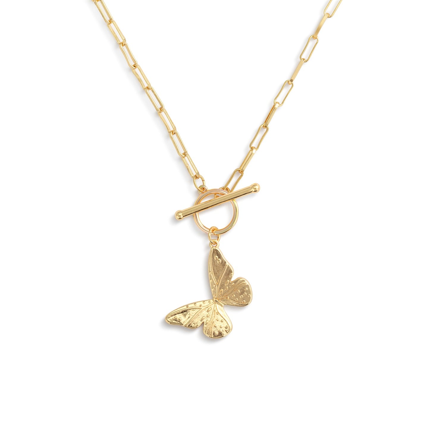Butterfly Toggle Gold Necklace 16in