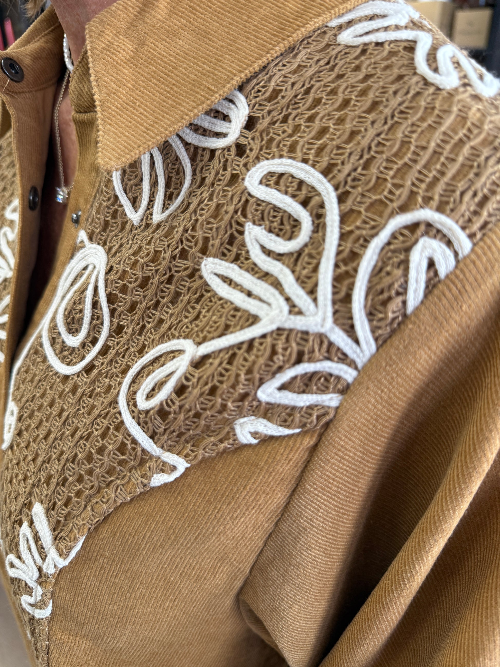 The Castilla Dress embodies timeless elegance with its collared neckline and front snap button closure. Made from lightweight, non-sheer 100% cotton, this dress features three-quarter balloon sleeves finished with wide band buttoned cuffs, and delicate embroidered details. Practical side pockets enhance its sophisticated design, offering both style and comfort in one graceful piece.