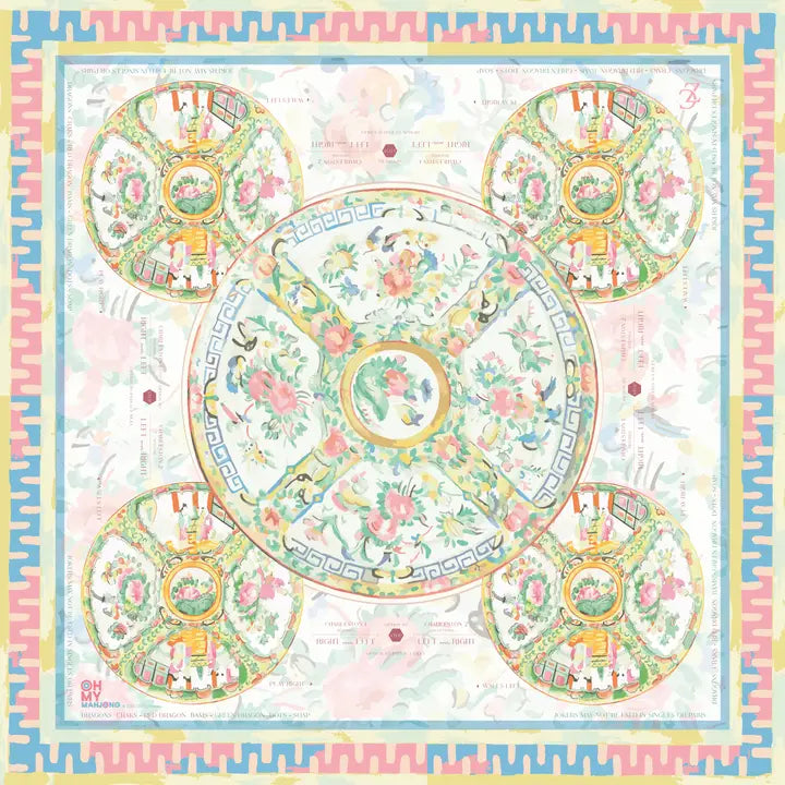 Step into sophistication with the Imperial Mahjong Mat, a stunning collaboration with CoCo Zentner. This mat blends rich, regal motifs inspired by classic designs with modern elegance. Its light hues and intricate patterns bring a refined edge to your game night, perfectly balancing tradition and contemporary style. The neoprene material makes cleanup easy, while the rubber non-slip backing ensures durability and grip. With instructional reminders around the border, Imperial combines elegance with practical gameplay. Dimensions: 33x33 Comes rolled in a canvas drawstring bag.