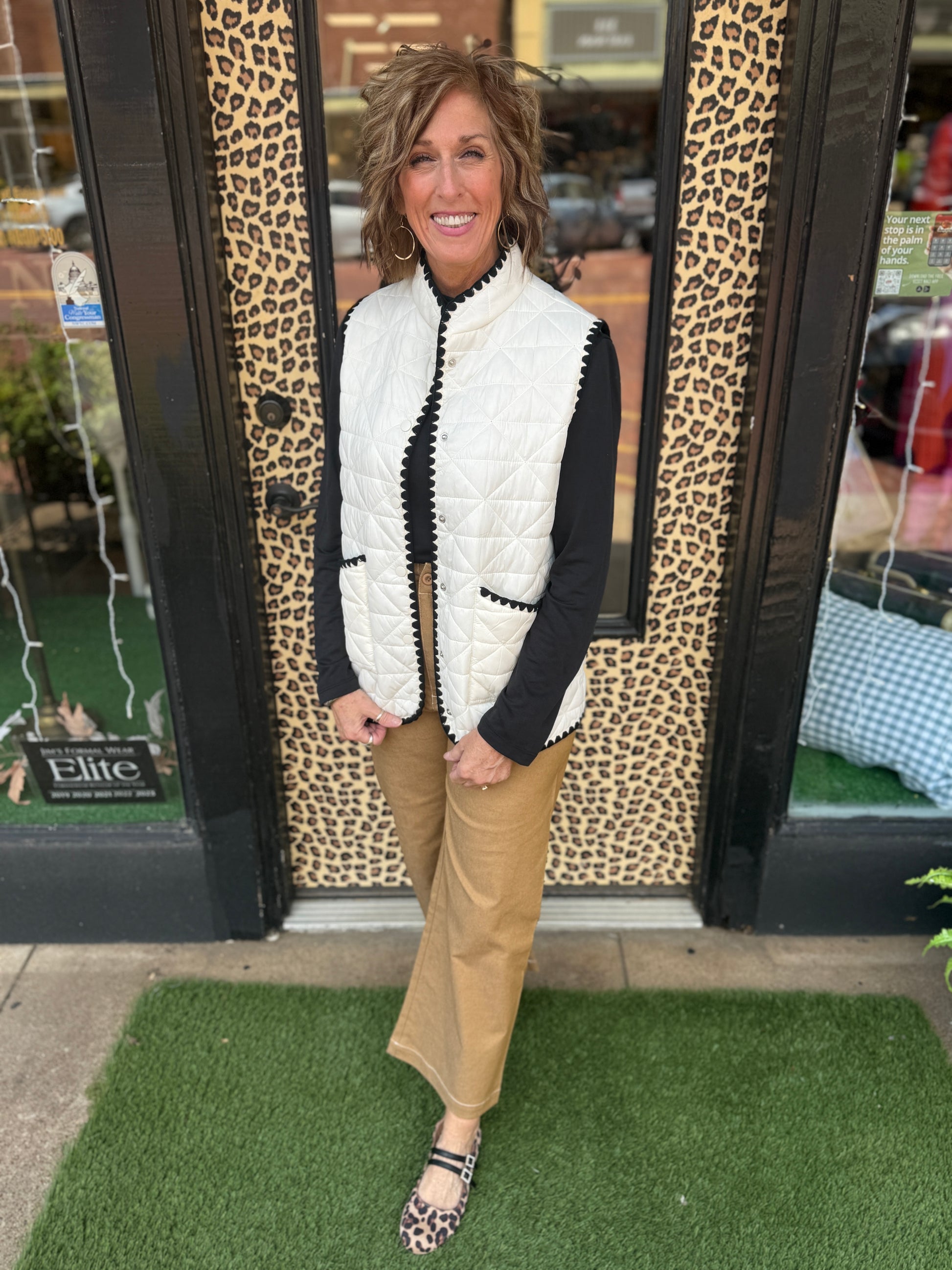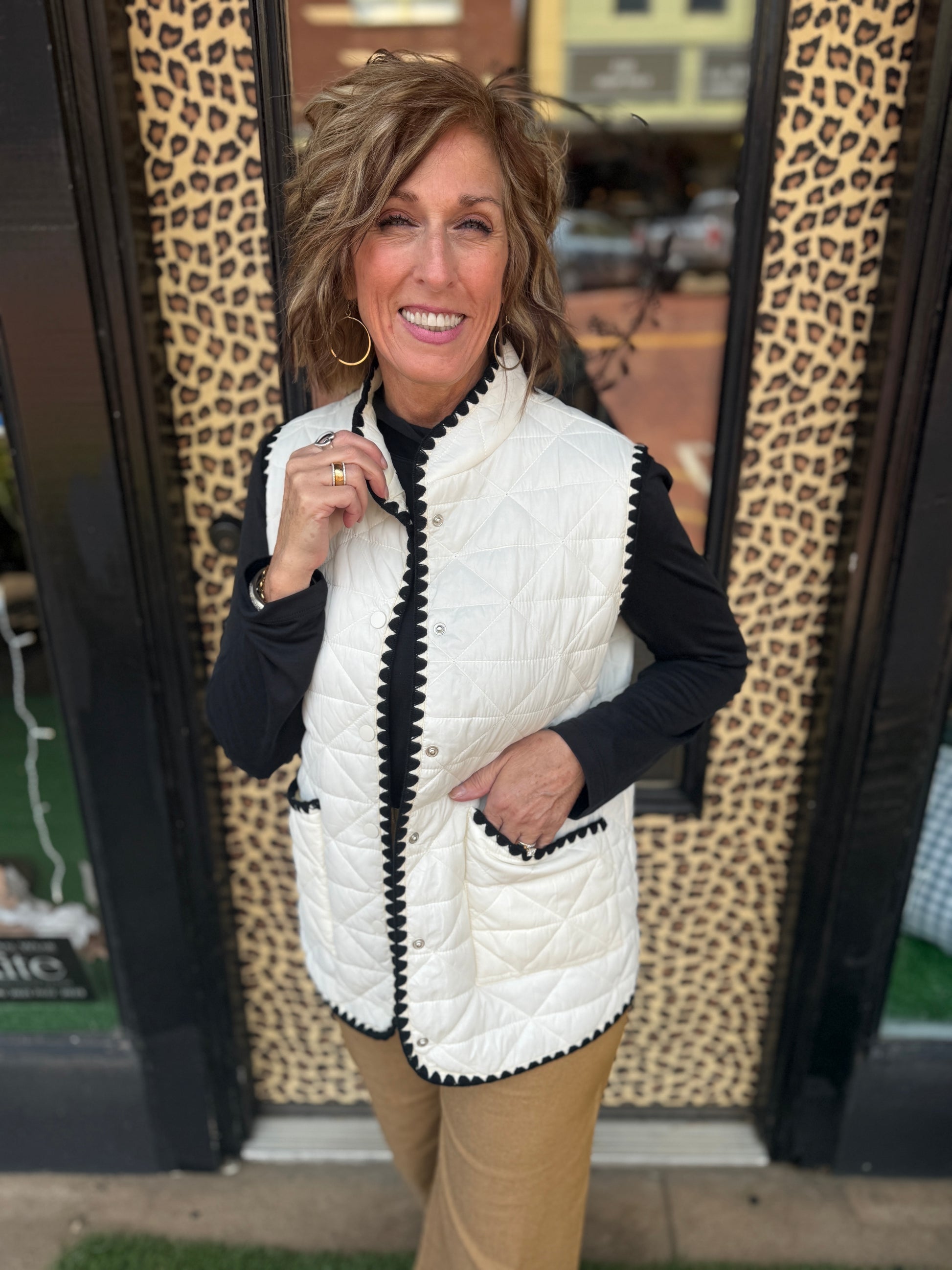 Elevate your wardrobe with the Krik Vest, featuring a crisp white base elegantly framed by contrasting black trim detail. This refined piece offers a clean silhouette and timeless appeal, perfect for layering over tailored shirts or dresses to create a polished, sophisticated look. Its subtle contrast adds depth without overpowering your outfit, making it a versatile addition to any modern collection.