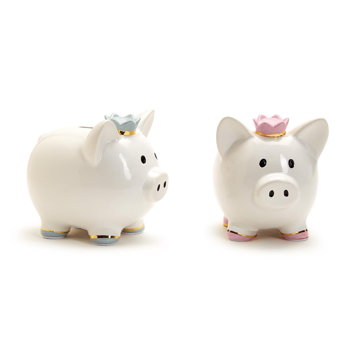 - Piggy bank features a charming crown and hand-painted gold accents, adding a touch of regal elegance to its design.
