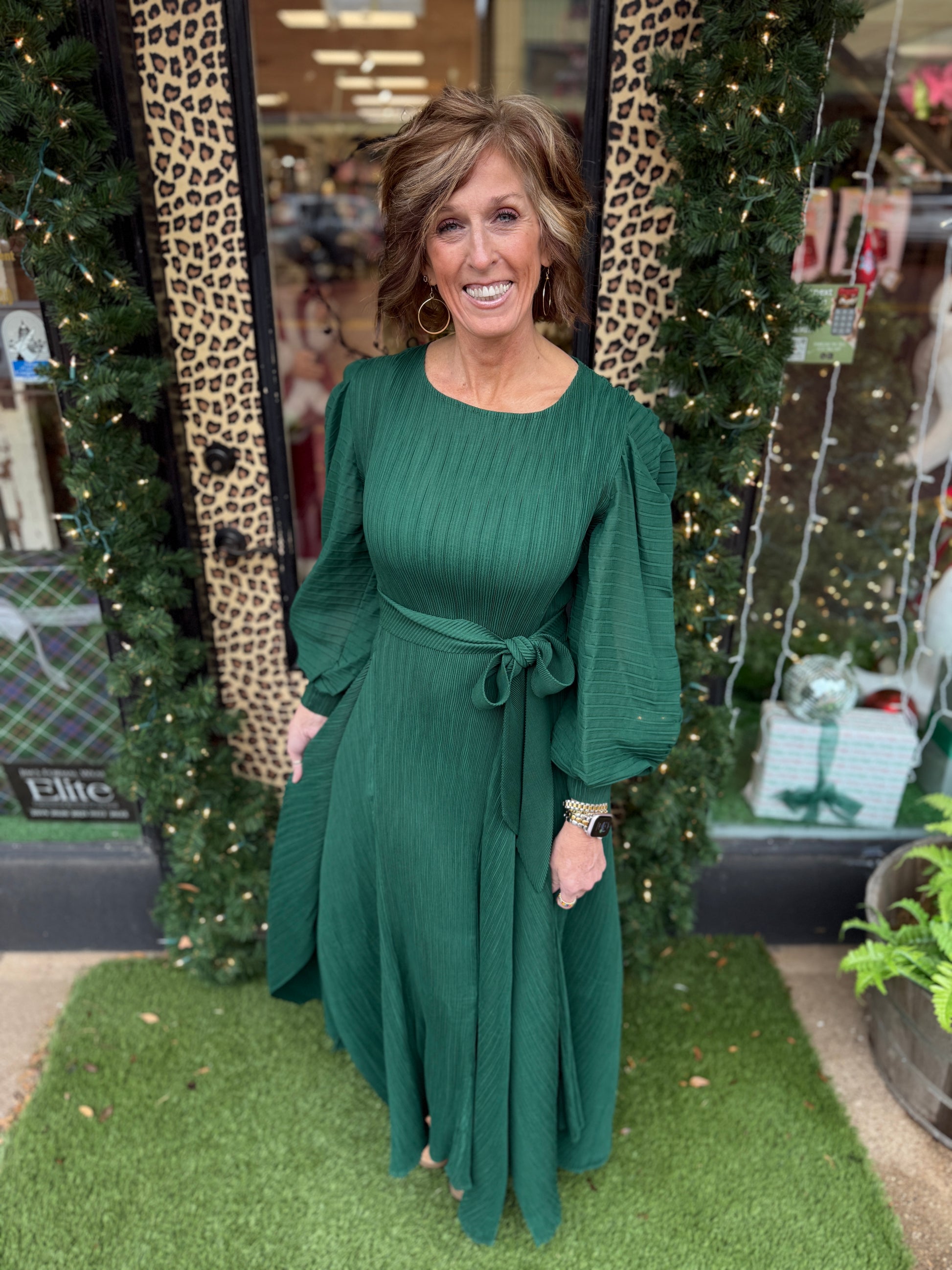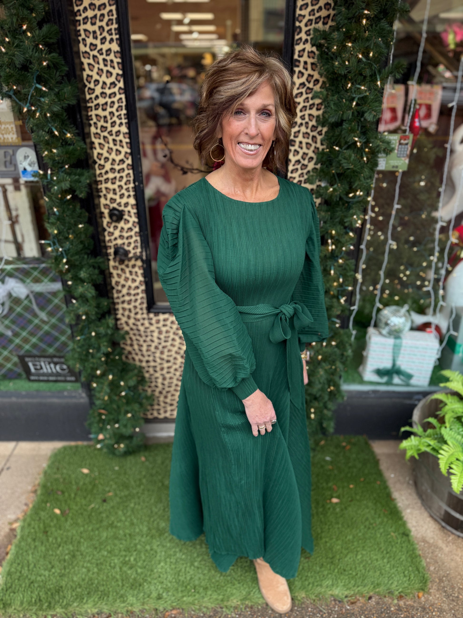 Introducing The Just For Me Dress, a stylish and versatile addition to your winter wardrobe. With its elegant green color, this dress will help you stand out in any occasion. Its comfortable fit and timeless design make it perfect for all your winter festivities. Elevate your style with The Just For Me Dress and make a statement wherever you go.