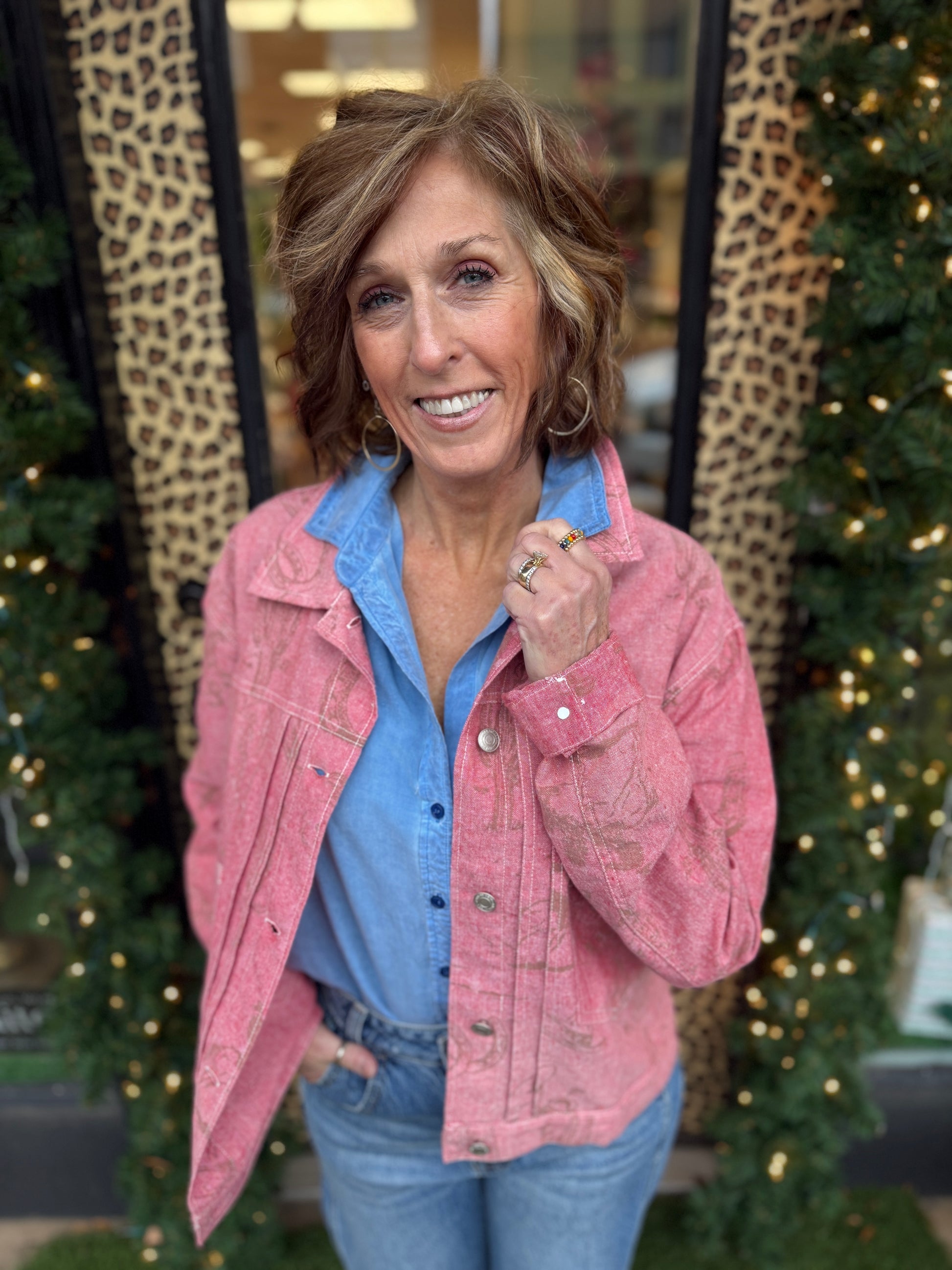Crafted from pure linen, this Western Motif Jacket combines timeless style with understated elegance. The classic button-up silhouette features distinctive western-inspired patterns throughout, while functional front patch pockets add practical appeal. Its relaxed straight fit ensures comfortable, effortless wear for any occasion. Perfect for layering or wearing solo, this versatile piece brings refined character to your wardrobe.
